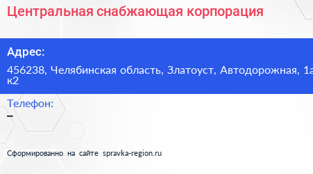 Центральная снабжающая корпорация по адресу 456238, Челябинская область, Златоуст, Автодорожная, 1а к2 в дальнейшем Организация, размещена в следующих категориях: