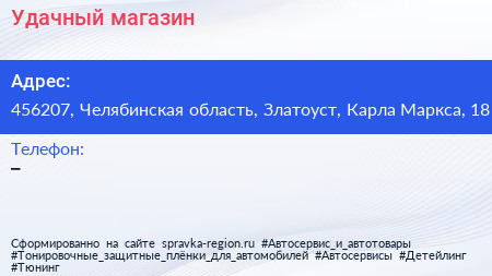 Удачный, магазин по адресу 456207, Челябинская область, Златоуст, Карла Маркса, 18 в дальнейшем Организация, размещена в следующих категориях: