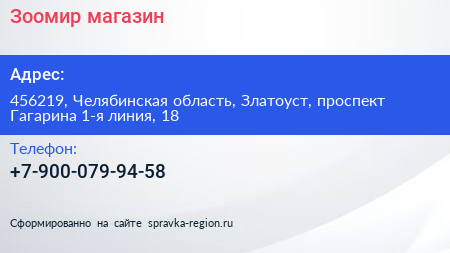 Зоомир, магазин по адресу 456219, Челябинская область, Златоуст, проспект Гагарина 1-я линия, 18 в дальнейшем Организация, размещена в следующих категориях: