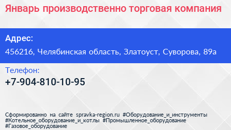 Январь, производственно-торговая компания по адресу 456216, Челябинская область, Златоуст, Суворова, 89а в дальнейшем Организация, размещена в следующих категориях: