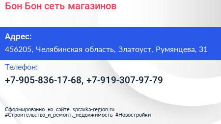 Бон-Бон, сеть магазинов по адресу 456205, Челябинская область, Златоуст, Румянцева, 31 в дальнейшем Организация, размещена в следующих категориях: