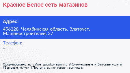 Красное & Белое, сеть магазинов по адресу 456228, Челябинская область, Златоуст, Машиностроителей, 37 в дальнейшем Организация, размещена в следующих категориях: