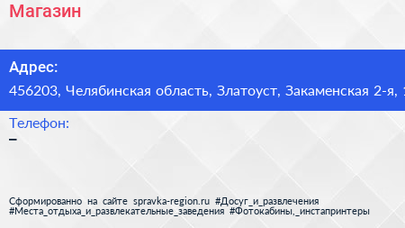 Магазин по адресу 456203, Челябинская область, Златоуст, Закаменская 2-я, 1 в дальнейшем Организация, размещена в следующих категориях: