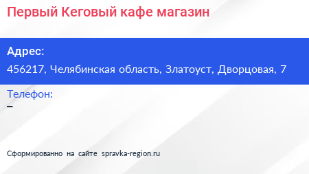 Первый Кеговый, кафе-магазин по адресу 456217, Челябинская область, Златоуст, Дворцовая, 7 в дальнейшем Организация, размещена в следующих категориях: