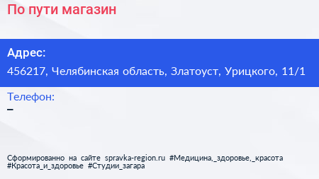 По пути, магазин по адресу 456217, Челябинская область, Златоуст, Урицкого, 11/1 в дальнейшем Организация, размещена в следующих категориях: