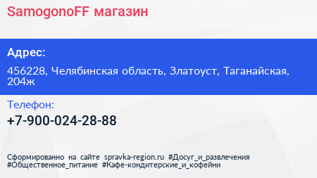 SamogonoFF, магазин по адресу 456228, Челябинская область, Златоуст, Таганайская, 204ж в дальнейшем Организация, размещена в следующих категориях: