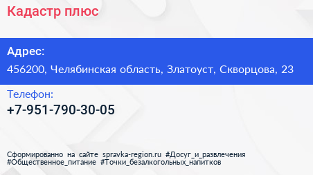 Кадастр плюс по адресу 456200, Челябинская область, Златоуст, Скворцова, 23 в дальнейшем Организация, размещена в следующих категориях: