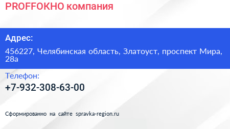 PROFFОКНО, компания по адресу 456227, Челябинская область, Златоуст, проспект Мира, 28а в дальнейшем Организация, размещена в следующих категориях: