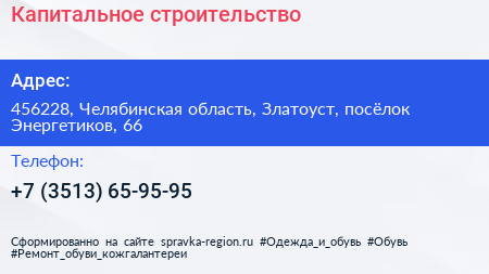 Капитальное строительство по адресу 456228, Челябинская область, Златоуст, посёлок Энергетиков, 66 в дальнейшем Организация, размещена в следующих категориях: