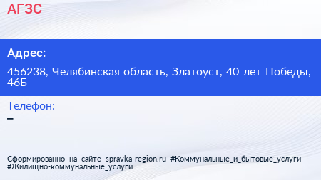 АГЗС по адресу 456238, Челябинская область, Златоуст, 40 лет Победы, 46Б в дальнейшем Организация, размещена в следующих категориях: