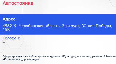 Автостоянка по адресу 456219, Челябинская область, Златоуст, 30 лет Победы, 15Б в дальнейшем Организация, размещена в следующих категориях: