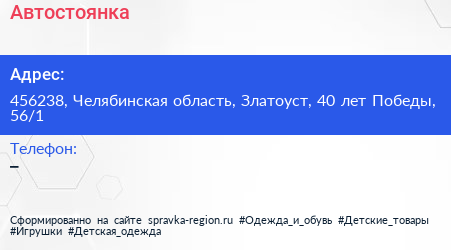 Автостоянка по адресу 456238, Челябинская область, Златоуст, 40 лет Победы, 56/1 в дальнейшем Организация, размещена в следующих категориях: