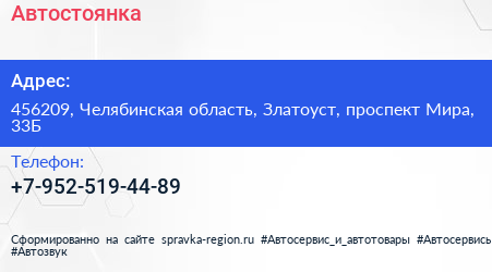 Автостоянка по адресу 456209, Челябинская область, Златоуст, проспект Мира, 33Б в дальнейшем Организация, размещена в следующих категориях: