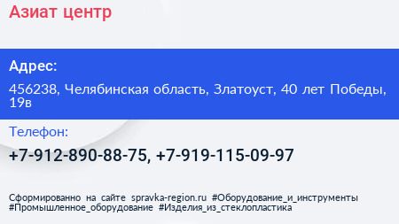 Азиат, центр по адресу 456238, Челябинская область, Златоуст, 40 лет Победы, 19в в дальнейшем Организация, размещена в следующих категориях: