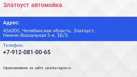 Златоуст, автомойка по адресу 456205, Челябинская область, Златоуст, Нижне-Вокзальная 5-я, 1Б/3 в дальнейшем Организация, размещена в следующих категориях: