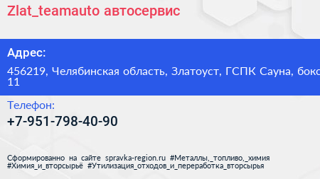 Zlat_teamauto, автосервис по адресу 456219, Челябинская область, Златоуст, ГСПК Сауна, бокс 11 в дальнейшем Организация, размещена в следующих категориях: