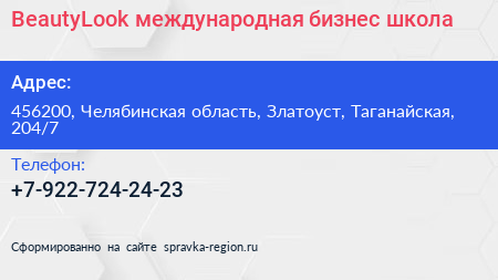 BeautyLook, международная бизнес школа по адресу 456200, Челябинская область, Златоуст, Таганайская, 204/7 в дальнейшем Организация, размещена в следующих категориях: