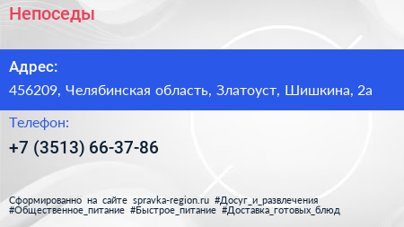 Непоседы по адресу 456209, Челябинская область, Златоуст, Шишкина, 2а в дальнейшем Организация, размещена в следующих категориях: