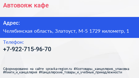 Автовояж, кафе по адресу Челябинская область, Златоуст, М-5 1729 километр, 1 в дальнейшем Организация, размещена в следующих категориях: