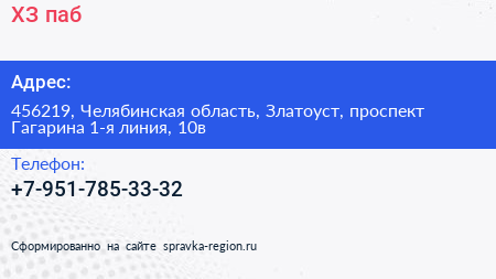 ХЗ, паб по адресу 456219, Челябинская область, Златоуст, проспект Гагарина 1-я линия, 10в в дальнейшем Организация, размещена в следующих категориях: