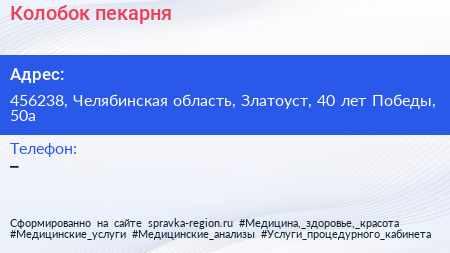Колобок, пекарня по адресу 456238, Челябинская область, Златоуст, 40 лет Победы, 50а в дальнейшем Организация, размещена в следующих категориях: