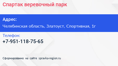 Спартак, веревочный парк по адресу Челябинская область, Златоуст, Спортивная, 1г в дальнейшем Организация, размещена в следующих категориях: