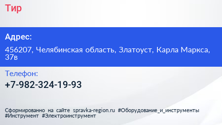 Тир по адресу 456207, Челябинская область, Златоуст, Карла Маркса, 37в в дальнейшем Организация, размещена в следующих категориях: