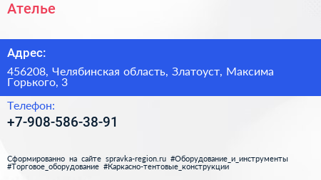 Ателье по адресу 456208, Челябинская область, Златоуст, Максима Горького, 3 в дальнейшем Организация, размещена в следующих категориях: