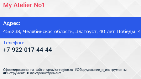 My Atelier No1 по адресу 456238, Челябинская область, Златоуст, 40 лет Победы, 42 в дальнейшем Организация, размещена в следующих категориях: