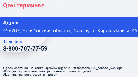 Qiwi, терминал по адресу 456207, Челябинская область, Златоуст, Карла Маркса, 45 в дальнейшем Организация, размещена в следующих категориях: