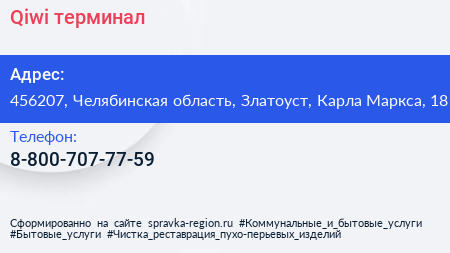 Qiwi, терминал по адресу 456207, Челябинская область, Златоуст, Карла Маркса, 18 в дальнейшем Организация, размещена в следующих категориях: