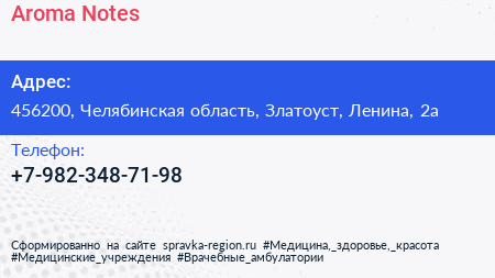 Aroma Notes по адресу 456200, Челябинская область, Златоуст, Ленина, 2а в дальнейшем Организация, размещена в следующих категориях: