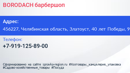 BORODACH, барбершоп по адресу 456227, Челябинская область, Златоуст, 40 лет Победы, 9 в дальнейшем Организация, размещена в следующих категориях: