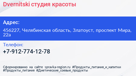 Dvernitski, студия красоты по адресу 456227, Челябинская область, Златоуст, проспект Мира, 22а в дальнейшем Организация, размещена в следующих категориях: