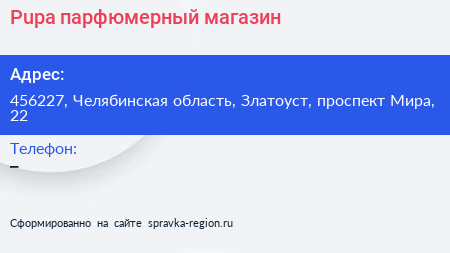 Pupa, парфюмерный магазин по адресу 456227, Челябинская область, Златоуст, проспект Мира, 22 в дальнейшем Организация, размещена в следующих категориях: