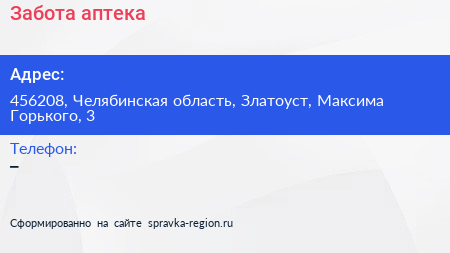 Забота, аптека по адресу 456208, Челябинская область, Златоуст, Максима Горького, 3 в дальнейшем Организация, размещена в следующих категориях: