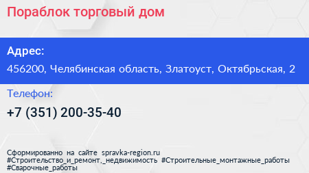 Пораблок, торговый дом по адресу 456200, Челябинская область, Златоуст, Октябрьская, 2 в дальнейшем Организация, размещена в следующих категориях: