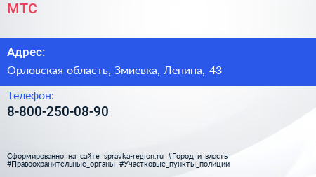 МТС по адресу Орловская область, Змиевка, Ленина, 43 в дальнейшем Организация, размещена в следующих категориях: