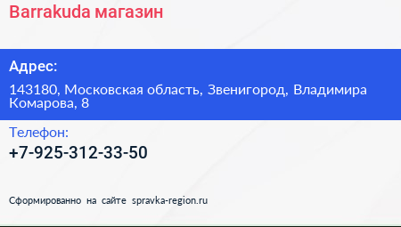 Barrakuda, магазин по адресу 143180, Московская область, Звенигород, Владимира Комарова, 8 в дальнейшем Организация, размещена в следующих категориях: