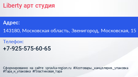 Liberty, арт-студия по адресу 143180, Московская область, Звенигород, Московская, 15 в дальнейшем Организация, размещена в следующих категориях: