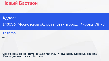 Новый Бастион по адресу 143036, Московская область, Звенигород, Кирова, 78 к3 в дальнейшем Организация, размещена в следующих категориях: