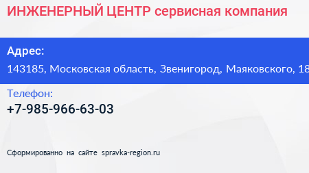 ИНЖЕНЕРНЫЙ ЦЕНТР, сервисная компания по адресу 143185, Московская область, Звенигород, Маяковского, 18 в дальнейшем Организация, размещена в следующих категориях: