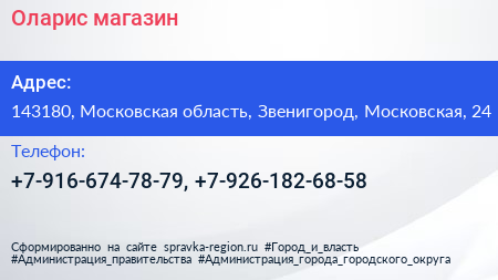 Оларис, магазин по адресу 143180, Московская область, Звенигород, Московская, 24 в дальнейшем Организация, размещена в следующих категориях: