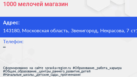 1000 мелочей, магазин по адресу 143180, Московская область, Звенигород, Некрасова, 7 ст1 в дальнейшем Организация, размещена в следующих категориях:
