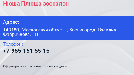 Нюша & Плюша, зоосалон по адресу 143180, Московская область, Звенигород, Василия Фабричнова, 18 в дальнейшем Организация, размещена в следующих категориях: