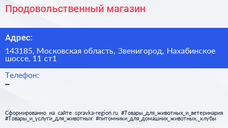 Продовольственный магазин по адресу 143185, Московская область, Звенигород, Нахабинское шоссе, 11 ст1 в дальнейшем Организация, размещена в следующих категориях: