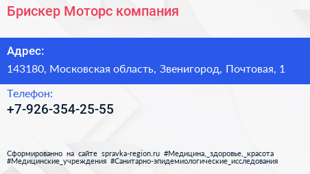 Брискер-Моторс, компания по адресу 143180, Московская область, Звенигород, Почтовая, 1 в дальнейшем Организация, размещена в следующих категориях: