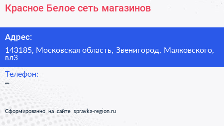 Красное & Белое, сеть магазинов по адресу 143185, Московская область, Звенигород, Маяковского, вл3 в дальнейшем Организация, размещена в следующих категориях: