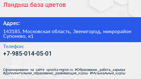 Ландыш, база цветов по адресу 143185, Московская область, Звенигород, микрорайон Супонево, к1 в дальнейшем Организация, размещена в следующих категориях: