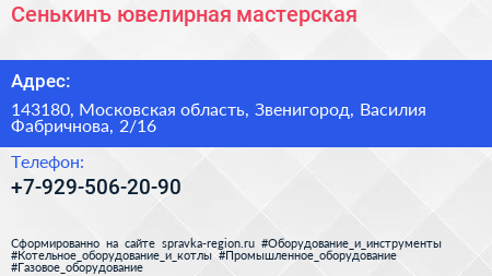 Сенькинъ, ювелирная мастерская по адресу 143180, Московская область, Звенигород, Василия Фабричнова, 2/16 в дальнейшем Организация, размещена в следующих категориях: